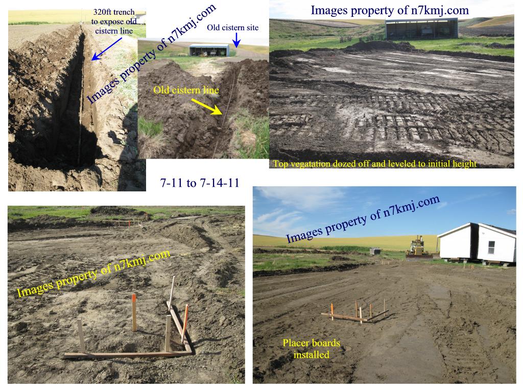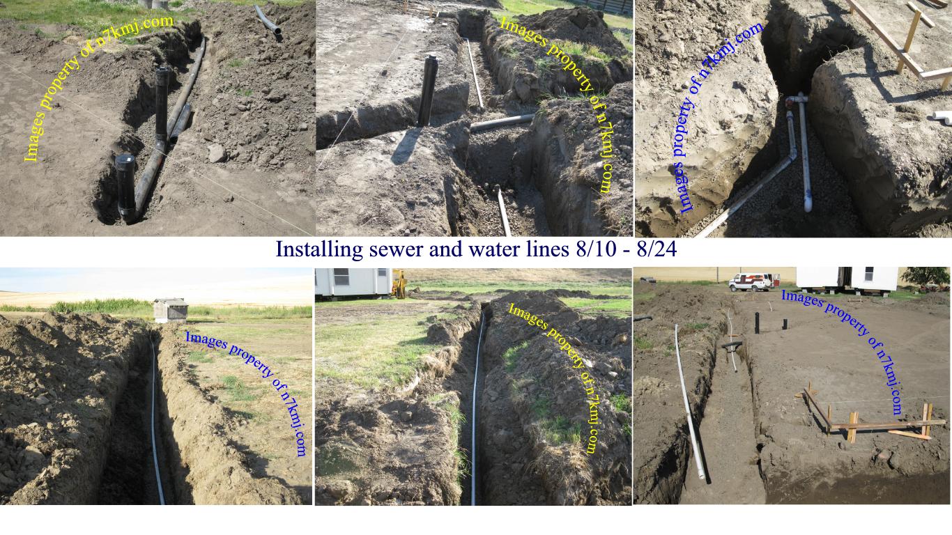 Using tools, Google Earth, Google Sketchup, my transit and a 100ft tape, placer boards were installed and string strung. I set about digging all the trenchs for sewer, water and electrical lines. Here are a few images of my progress up to 8/24.