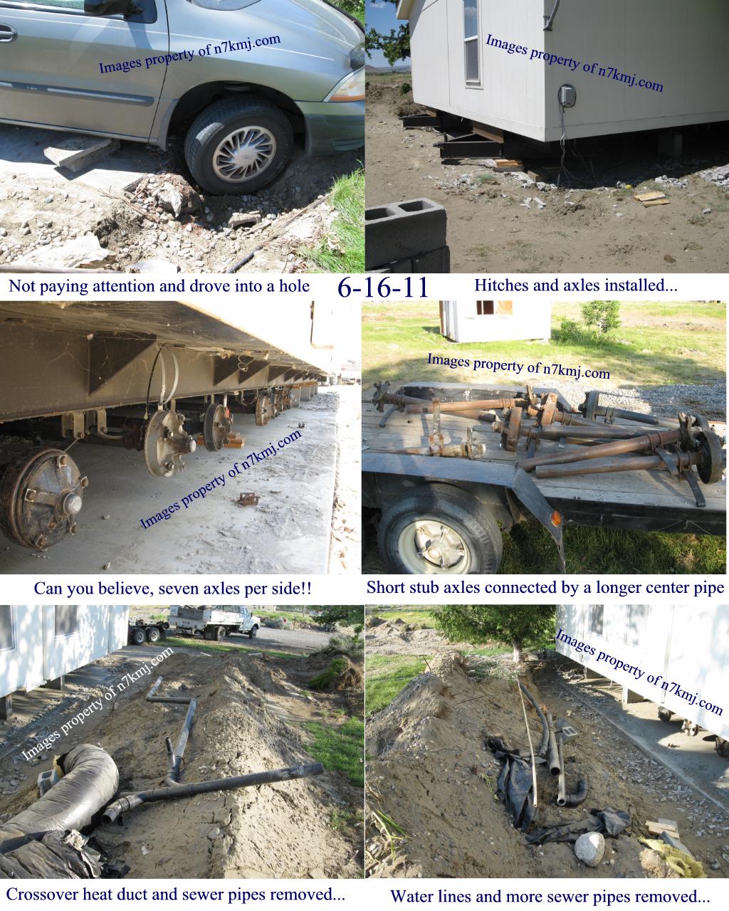 The second half was to be moved a few days later. However, a few days had passed and I was getting concerned that I had not received a call stating the second half was being moved. I assumed the movers would not move during the weekend. I called the land owner to see if he knew what was happening on his end. The land owner chuckled and stated that he was amazed the first half arrived ok. Shocked at his rely, I inquired why he felt that way. He informed me that when the movers hooked up to the first unit and headed out, they got about a 100 yards down the road when the hitch broke out from underneath the unit!! "Holy smokes", I replied! The movers mentioned "nothing" about that happening. The land owner stated that it was a good thing it happend so close and not on the main highway somewhere. The land owner watched their welder weld the hitches on originally and he thought to himself about the shoddy welding job he did. At this point, I was thinking to myself, "what type of moving outfit did you recommend me?" Holy Cow!!